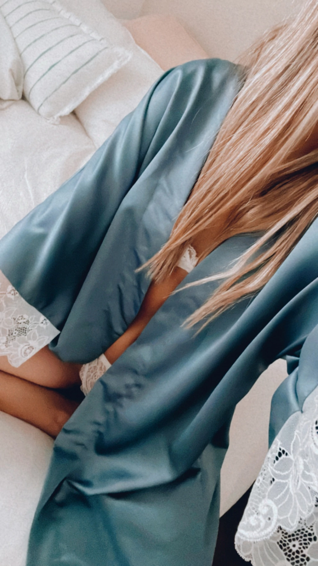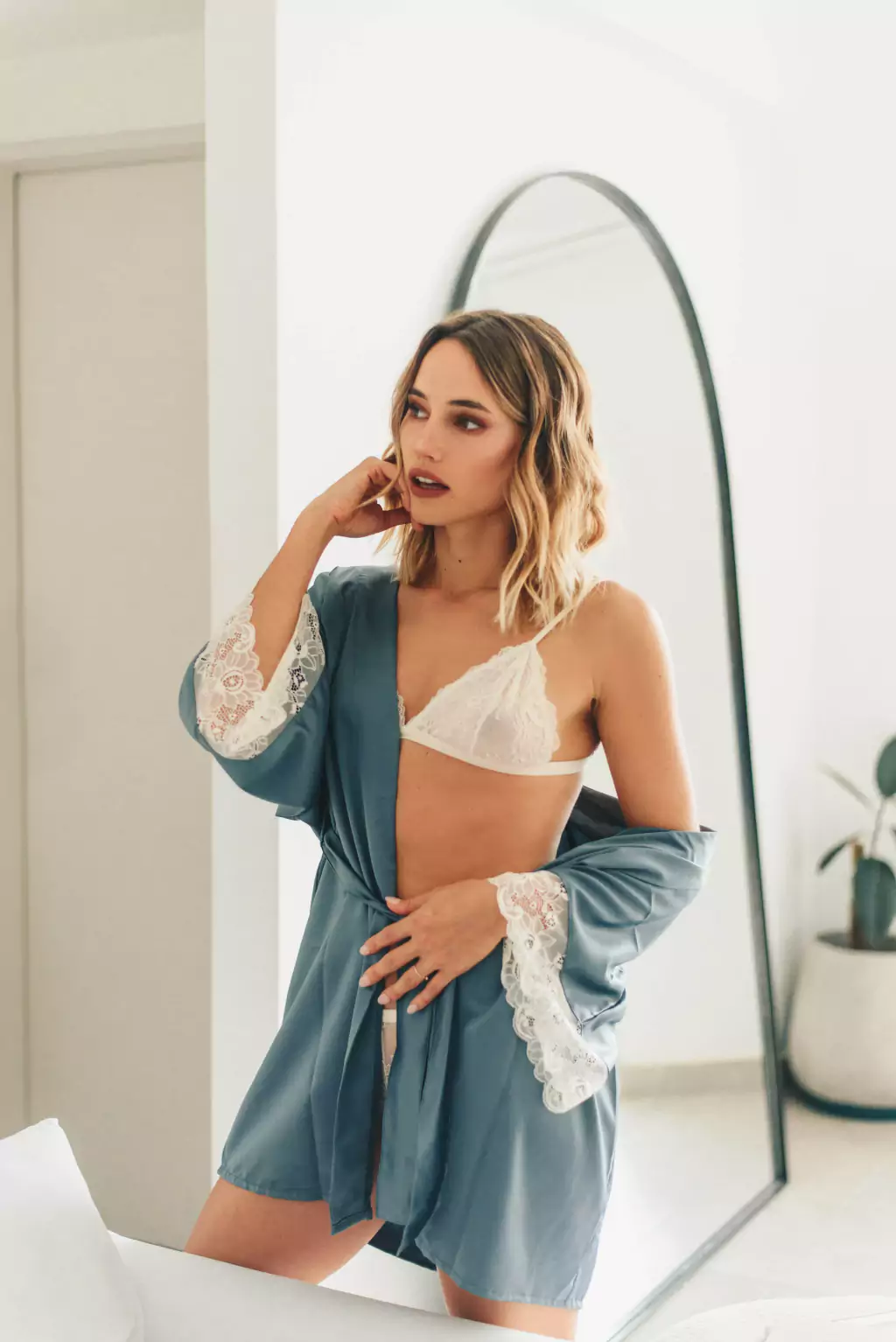 Bata de saten elastizado con puntilla en las mangas 3/4. Ideal para acompañar a futuras novias originales y distintas en su gran día.